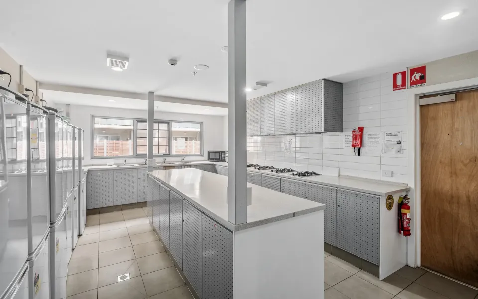 Our communal kitchen is equipped with personal fridges, private pantries, and shared appliances like a kettle, stove, and microwave. Laundry facilities are available, and there’s a communal area for relaxing, studying, or dining. The property is maintained with regular cleaning and is secured with electronic key tags and CCTV in all common areas for your safety.